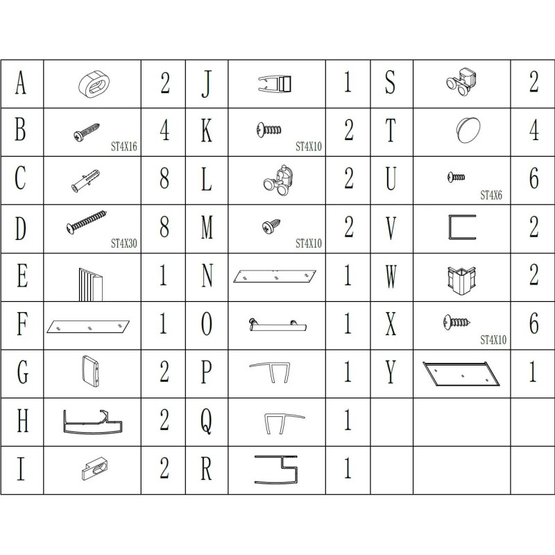 | Комплектація | Упаковка 1/1 (182x78x5см.) Скляні двері: 1шт. Скляна передня стінка: 1шт. Скляна бокова стінка: 1шт. Вертикальний профіль: 2шт. Планка кріплення вертикального профілю: 2шт. Горизонтальний профіль: 2шт. Ущільнювач силіконовий: 2шт. Водозахисний ущільнювач: 4шт. Магнітний ущільнювач: 2шт. Аксесуари кабіни: комплект |