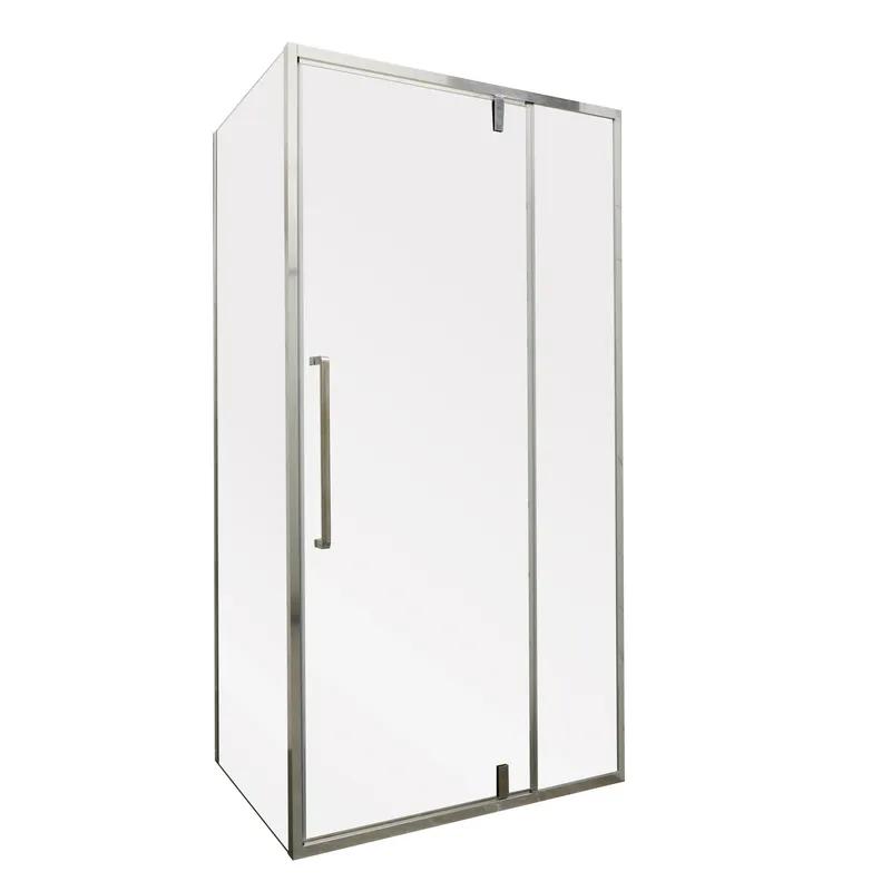 Душова кабіна складається із одних розпашних скляних дверей та двох фіксованих стінок, із регульованим профілем із хромованого алюмінію. Привабливий зовнішній вигляд дозволить втілити будь-які дизайнерські рішення та заощадити місце у санвузлі. Завіси із нержавіючої сталі надійні та стильні. Подовжена ручка із нержавіючої сталі додасть привабливості. Герметичність закриття забезпечується силіконовими магнітними ущільнювачами на краях дверей. Піддон до комплектації не входить.