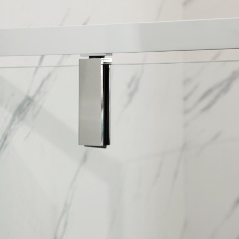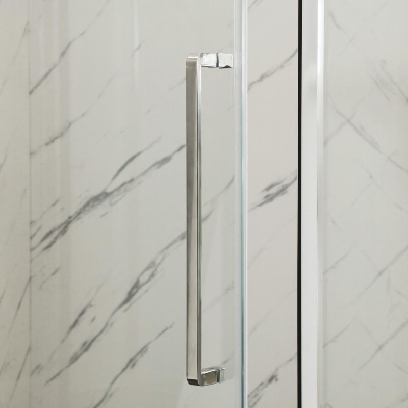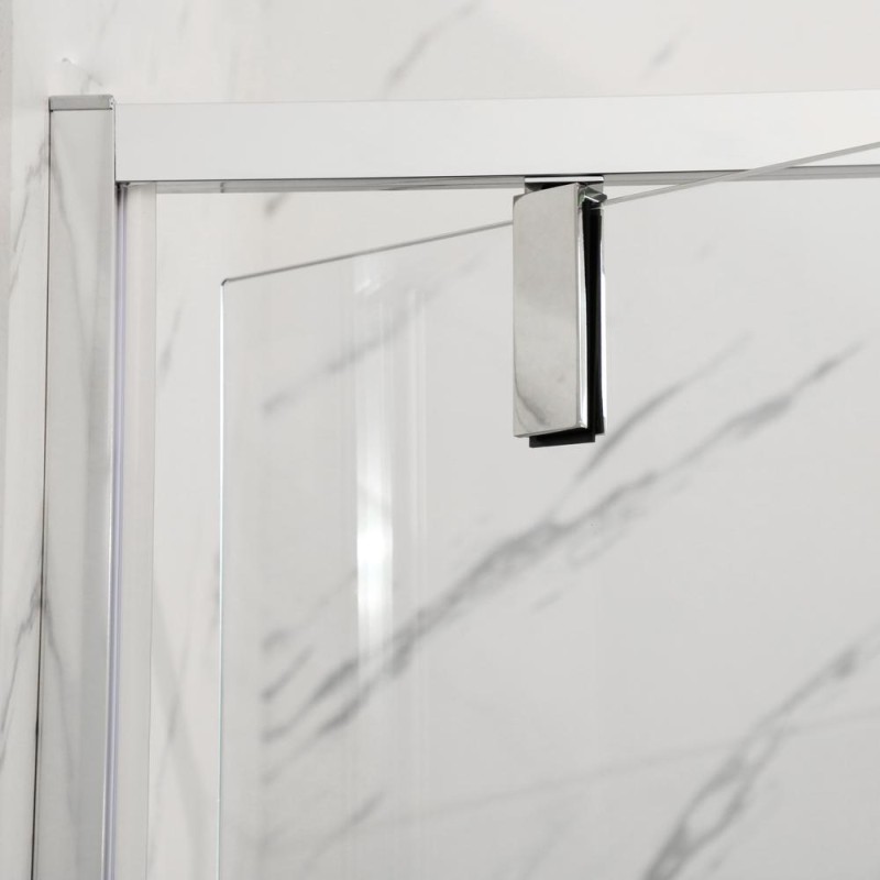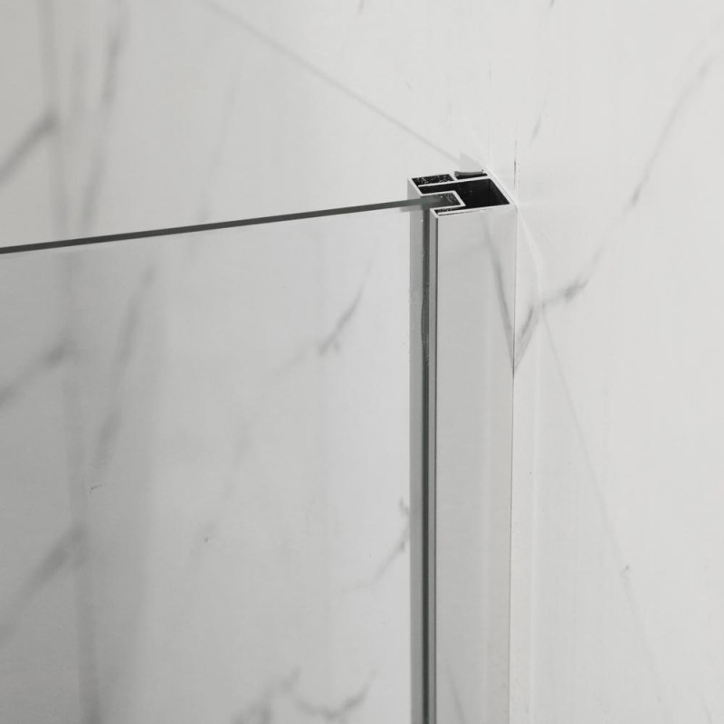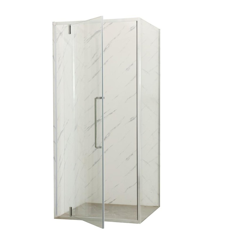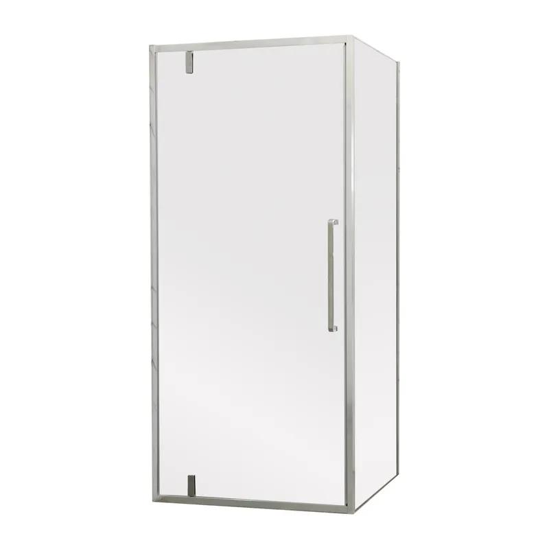 Душова кабіна складається із одних розпашних скляних дверей та однієї фіксованої стінки, з регульованим хромованим профілем із алюмінію. Привабливий зовнішній вигляд дозволить втілити будь-які дизайнерські рішення та заощадити місце у санвузлі. Завіси із нержавіючої сталі надійні та стильні. Подовжена ручка із нержавіючої сталі додасть привабливості. Герметичність закриття забезпечується силіконовими магнітними ущільнювачами на краях дверей. Піддон до комплектації не входить.