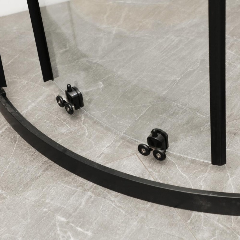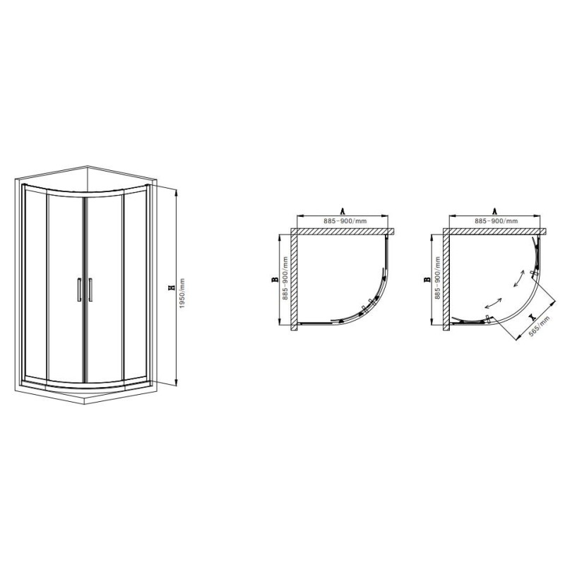 Душова кабіна складається із двох стильних розсувних скляних дверей та двох фіксованих стінок, з подвійним регульованим профілем із алюмінію. Привабливий зовнішній вигляд дозволить втілити будь-які дизайнерські рішення та заощадити місце у санвузлі. Регулюючі хромовані подвійні верхні і нижні ролики мають збільшений термін експлуатації. Герметичність закриття забезпечується силіконовими магнітними ущільнювачами на краях дверей. Піддон до комплектації не входить.