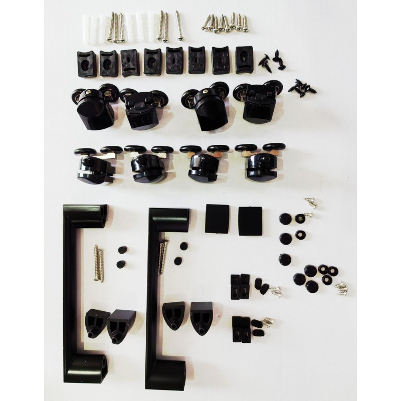 | Комплектація | Упаковка 1/1. Подвійні ролики, ручки, верхній профіль, нижній профіль, бічні профілі, набір ущільнювачів, 2 скляних дверей, 2 фіксованих скла, комплект кріплень, заглушки, елементи, що з'єднують, фіксатори. |