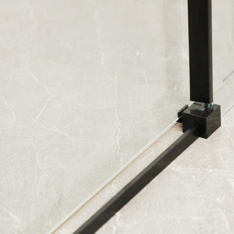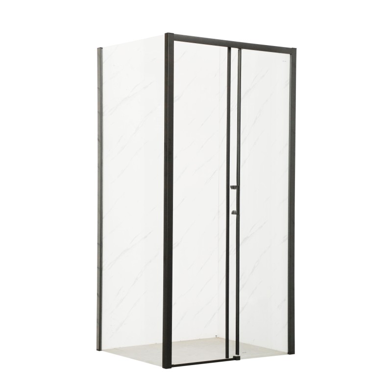 Душова кабіна складається із одних стильних розсувних скляних дверей та двох фіксованих стінок, з подвійним регульованим профілем із алюмінію. Привабливий зовнішній вигляд дозволить втілити будь-які дизайнерські рішення та заощадити місце у санвузлі. Безшумні подвійні ролики із механізмом підйому надійні та спростять догляд за кабіною. Герметичність закриття забезпечується силіконовими магнітними ущільнювачами на краях дверей. Піддон до комплектації не входить.
