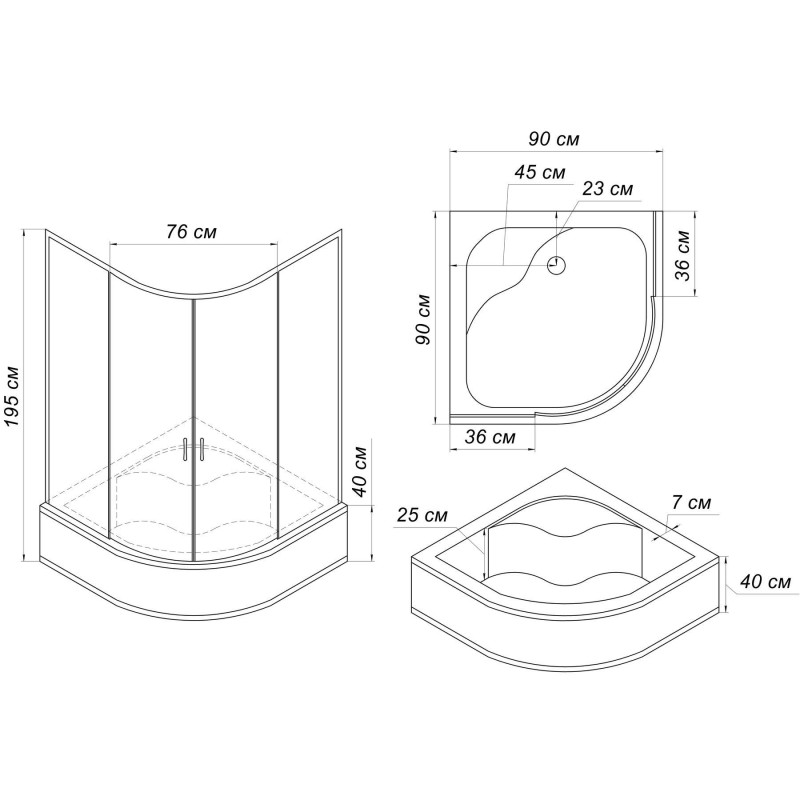 | Вид виробу | Душова кабіна з високим піддоном |