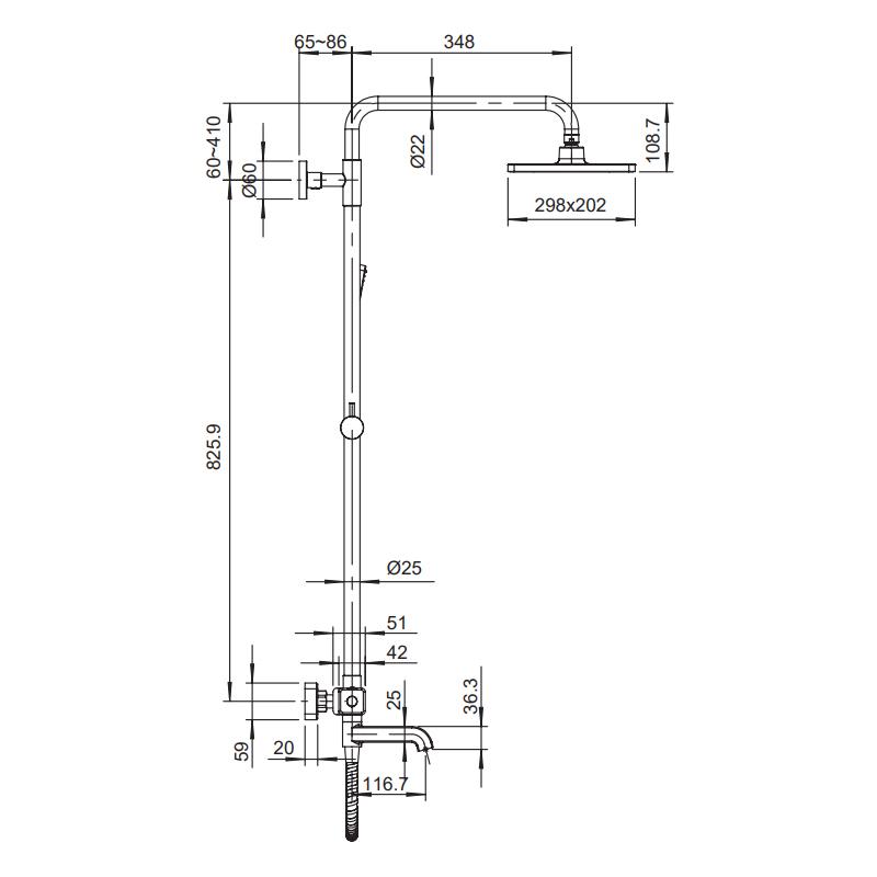 Особливості Розміри стельової лійки: 298х202 мм. Максимальна висота 1235 мм. Мінімальна висота 885 мм.