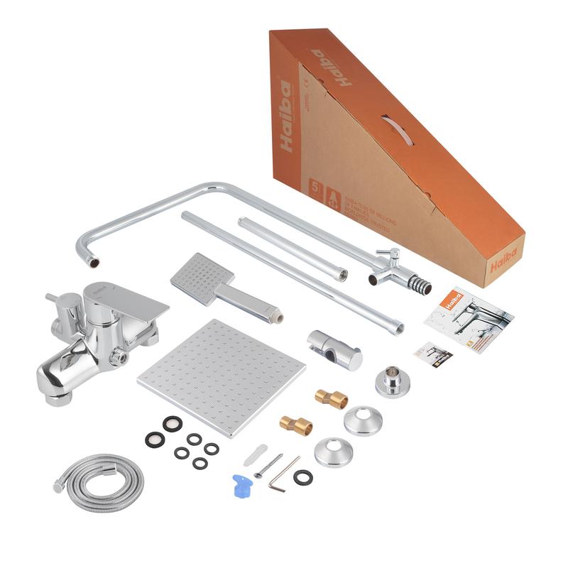 Душова система із змішувачем Haiba Alex 003-J - складається з душової штанги, шланга з ручною лійкою, верхнього душу. Довжина штанги налаштовується по висоті від 80 см до 120 см. З точки зору економії ця модель є оптимальним варіантом, ціна якої впишеться в скромний сімейний бюджет.