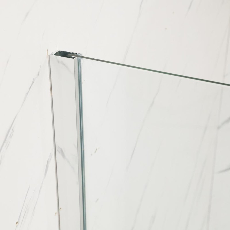 Душова перегородка Walk-In виготовлена із загартованого скла товщиною 8 мм та та алюмінієвого регульованого хромованого профілю з приємним блиском. Орієнтація виробу універсальна. Конструкція має регульовану ширину від 70 до 130 см і допомагає вирівняти кривизну стіни до15 мм. Вона легко монтується. Верхня опорна планка виготовлена з нержавіючої сталі SUS 304, що забезпечує її надійність.Така перегородка дозволить розмежувати зони санвузла та вбереже кімнату від зайвої вологи. Виріб може монтуватись як на підлогу, так і на піддон.