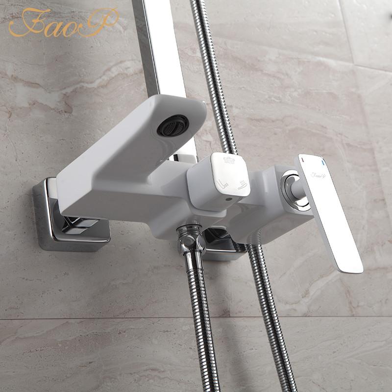 Душова система FAOP A2403-8, вилив - перемикач на лійку, 2-режими, білий-хром