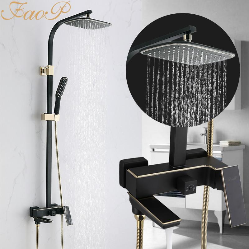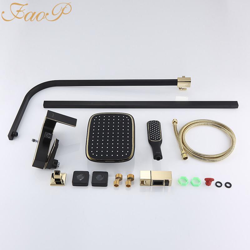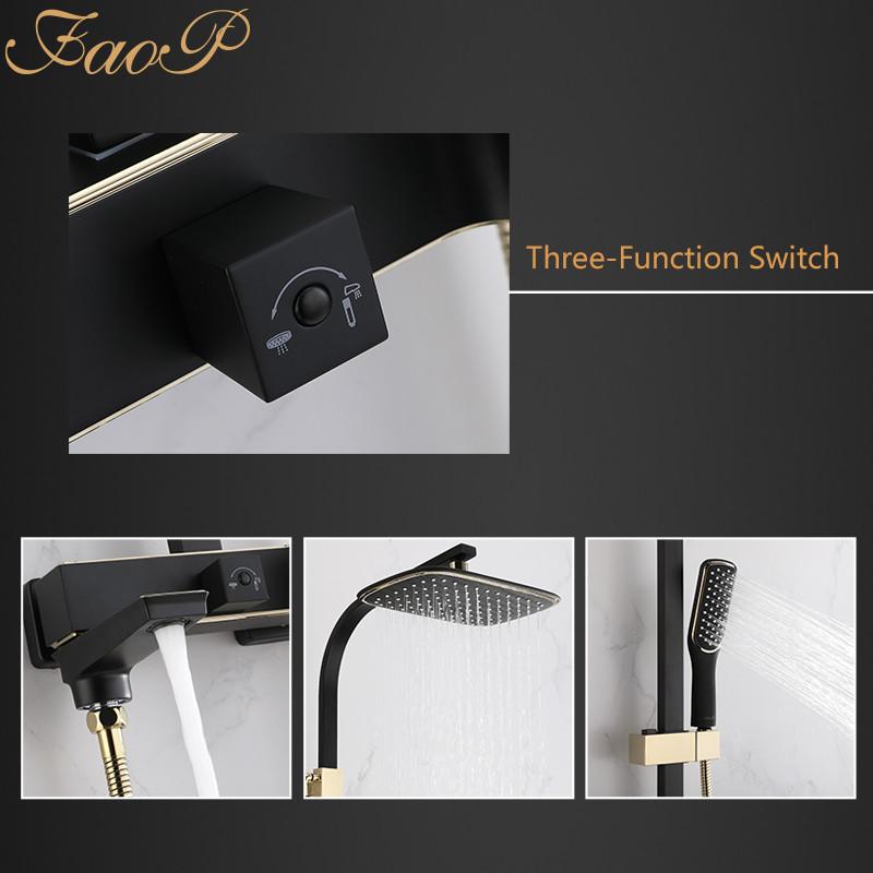 Душова система FAOP A2406-6, вилив - перемикач на лійку, 1-режим, чорний-золото