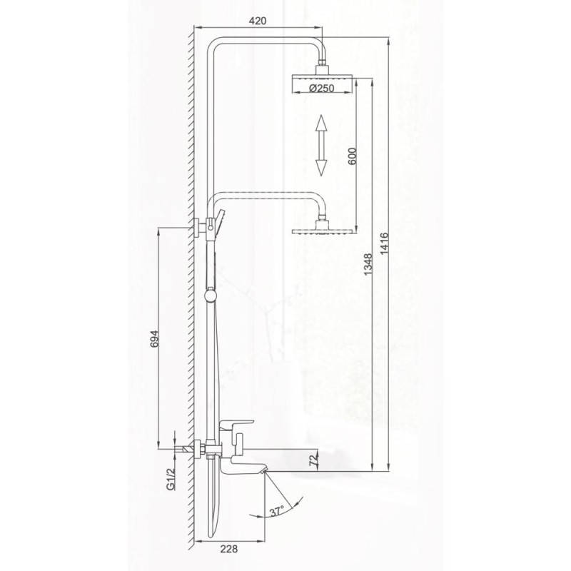 - Тропічний душ з діаметром ø250mm: Насолоджуйтеся неперевершеним комфортом завдяки тропічному душу з великим діаметром ø250mm, який забезпечить рівномірний та приємний струмінь води.