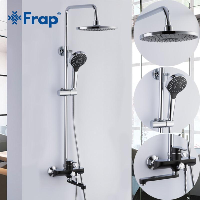 Душова система Frap F2442, поворотний вилив - перемикач на лійку, 3 режими, чорний/хром