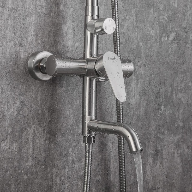 Душова система FRAP F2448 із трьома функціями — це надійне рішення для створення комфортної та сучасної зони душу у ванній кімнаті. Виготовлена з нержавіючої сталі з сатиновим покриттям, вона поєднує стильний вигляд, міцність і практичність у повсякденному використанні.
