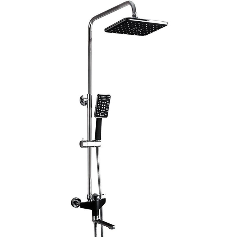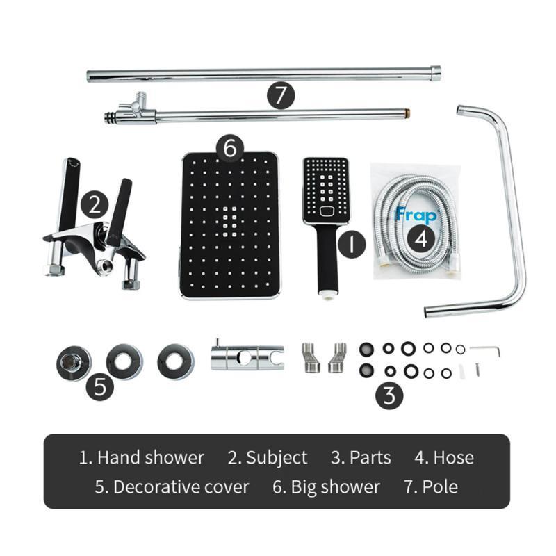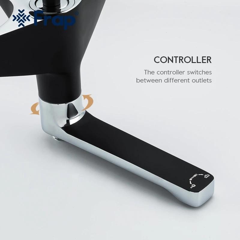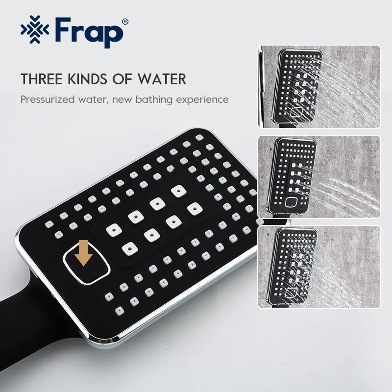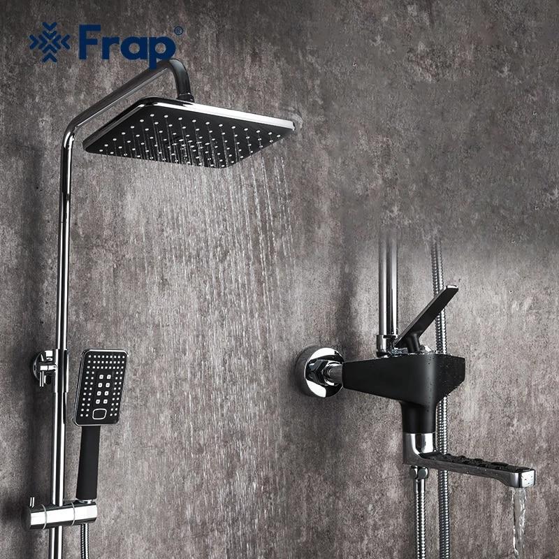 Душова система Frap F2457, поворотний вилив - перемикач на лійку/душ, 3 режими, чорний/хром