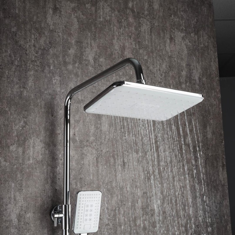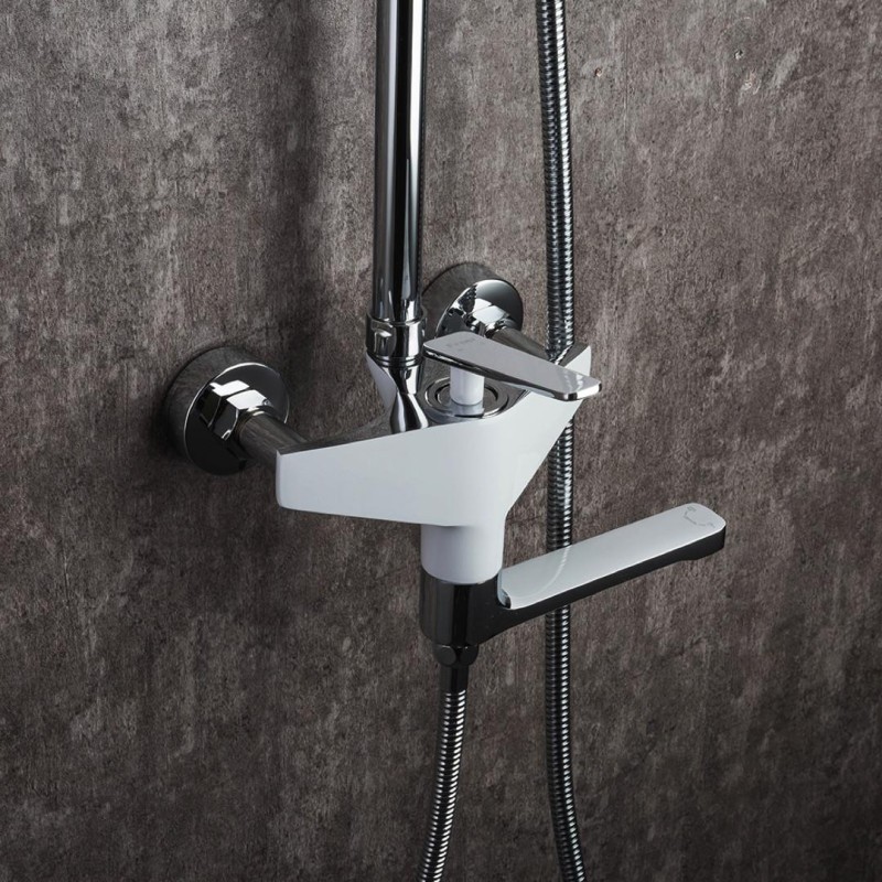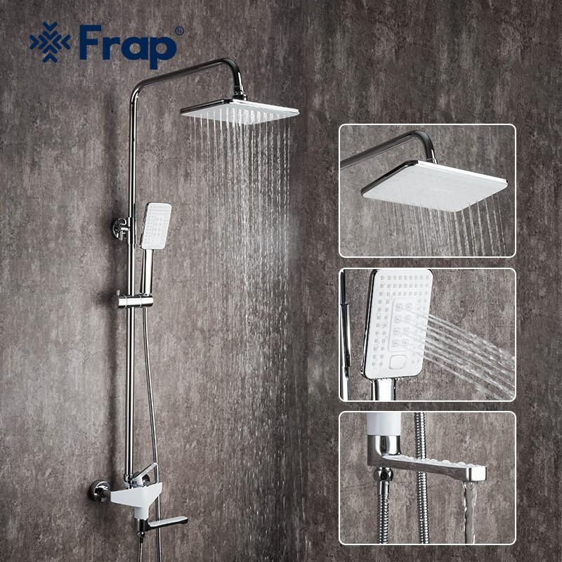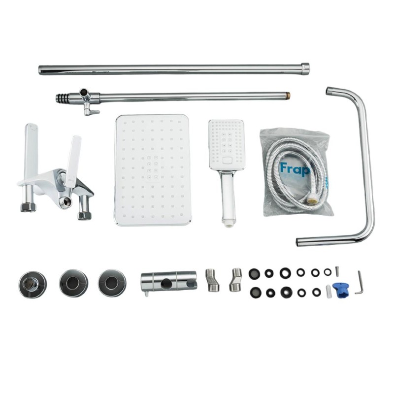 Душова система Frap F2458, поворотний вилив - перемикач на лійку/душ, 3 режими, білий/хром