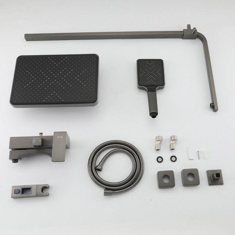 Душова система FRAP F2476-9 — це стильне та функціональне рішення для вашої ванної кімнати. Завдяки елегантному покриттю "збройова сталь", вона гармонійно поєднується з сучасними інтер’єрами, додаючи нотку розкоші та естетики. Виконана з високоякісної латуні, система забезпечує довговічність, зручність і комфорт під час прийняття душу.