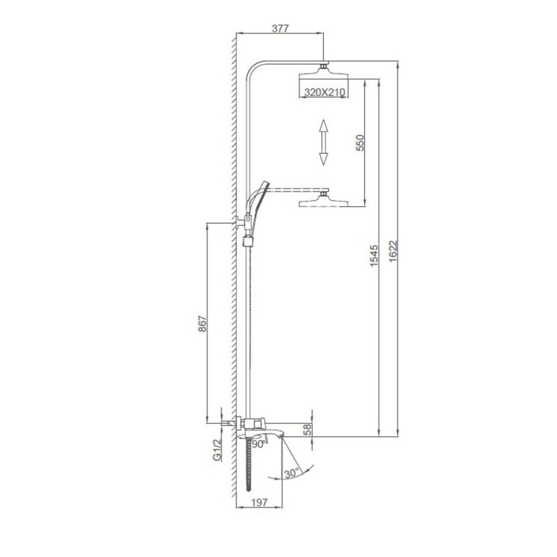 | Ручний душ, регульований за нахилом | Так |