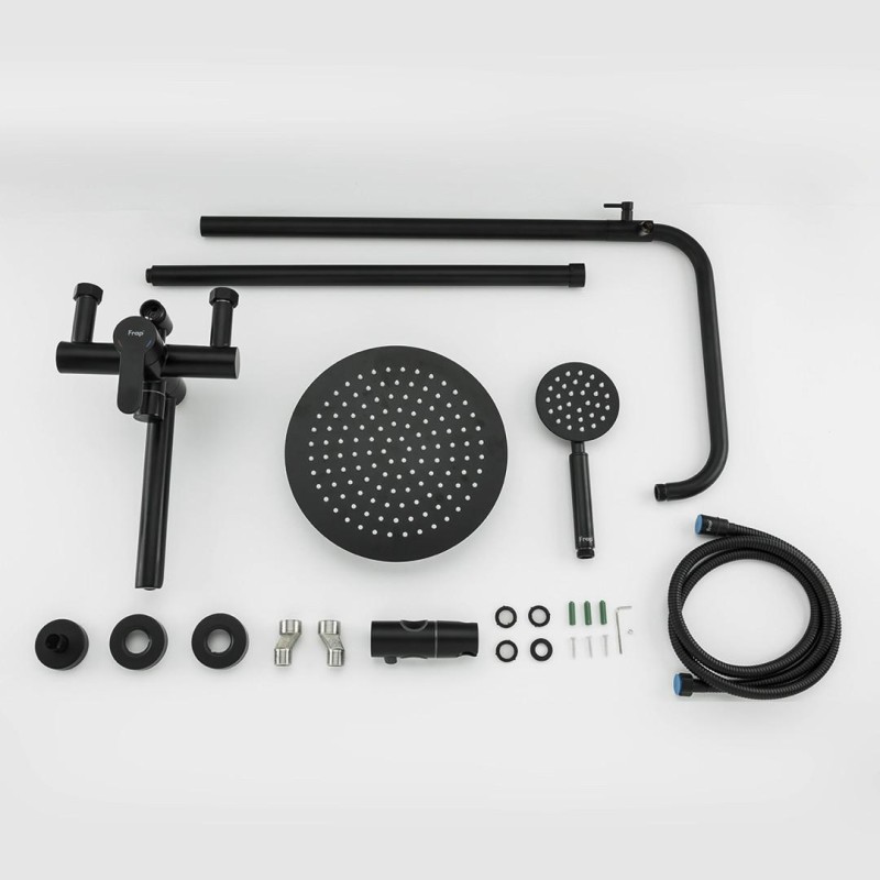 Душова система Frap F24801-6, поворотний вилив - перемикач на лійку, 1 режим, чорний