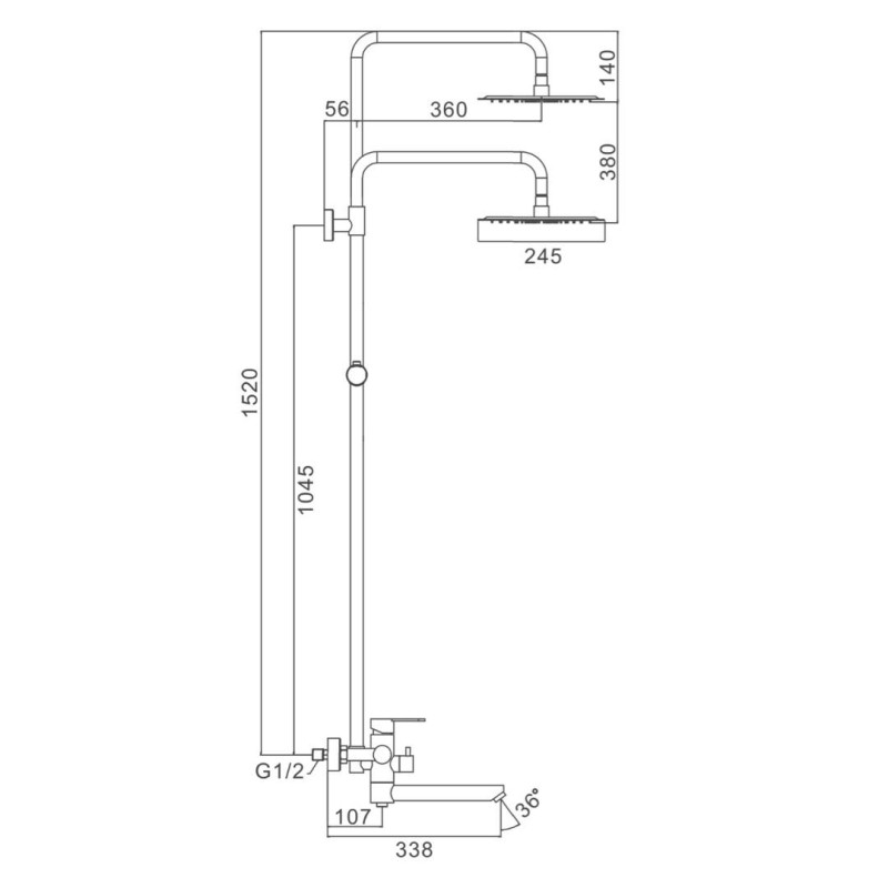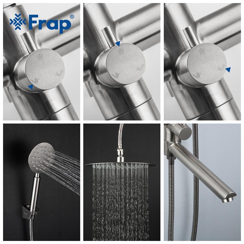 Душова система Frap F24801, поворотний вилив - перемикач на лійку, 1 режим, нержавіюча сталь