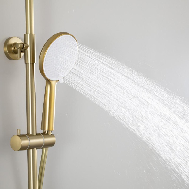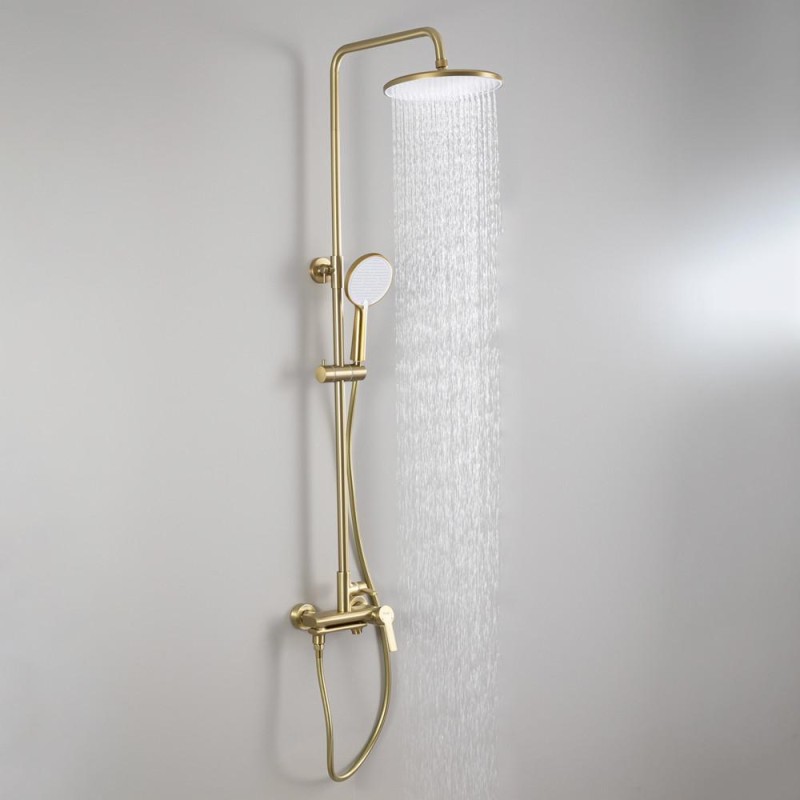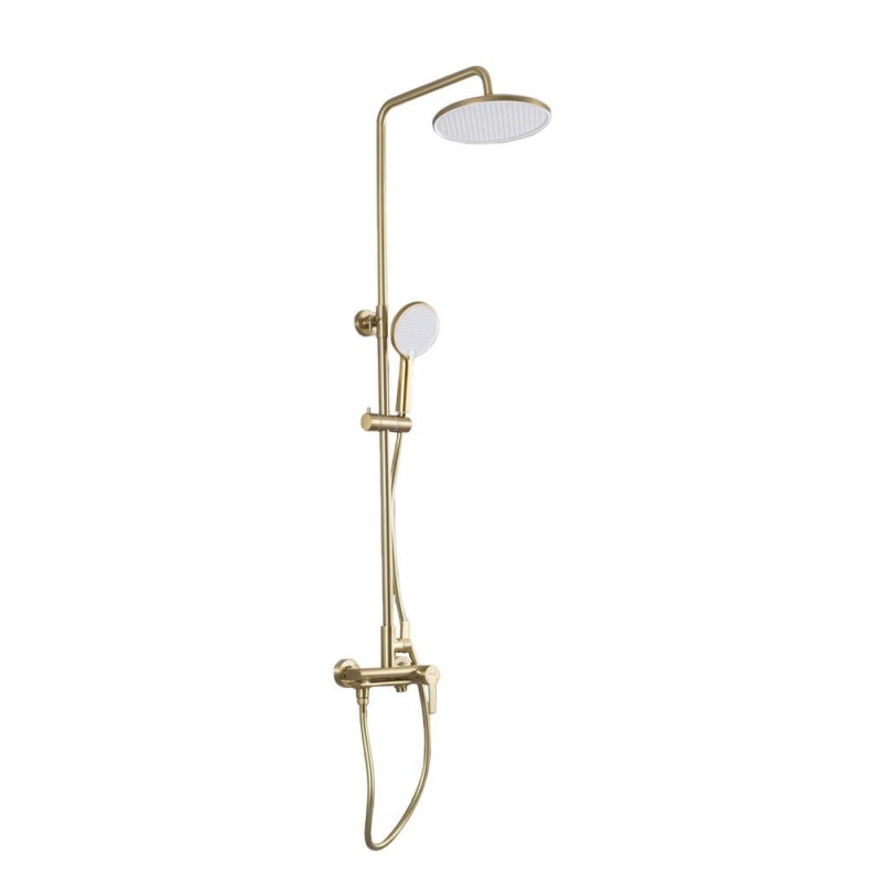 Душова система FRAP F2488-3 з поворотним виливом, 3 функції, латунь, золотий сатин — це поєднання стильного дизайну, високої якості та функціональності. Завдяки надійним матеріалам і продуманій конструкції, ця система забезпечує комфортне користування та довговічність.