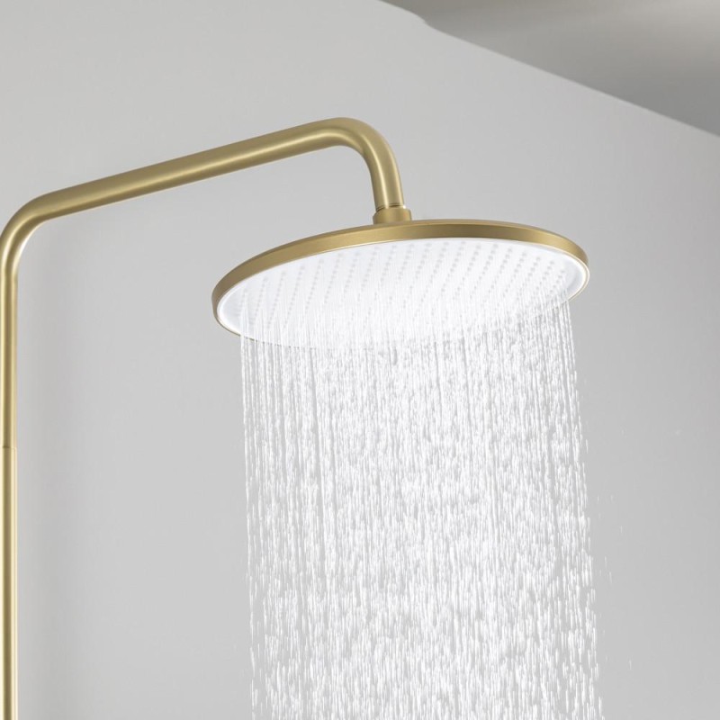 - Колір "золотий сатин" додає системі елегантності, роблячи її стильним акцентом у вашій ванній кімнаті.