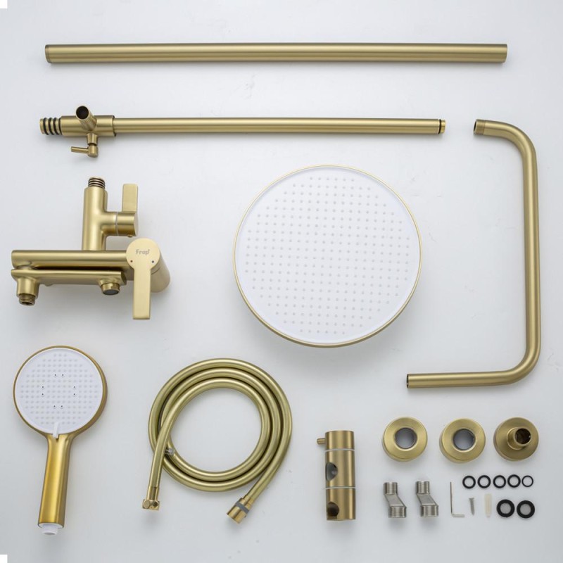Душова система FRAP F2488-3 з поворотним виливом, 3 функції, латунь, золотий сатин