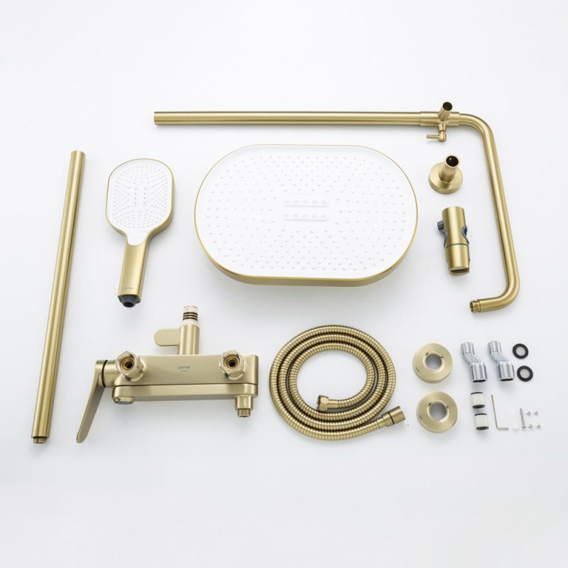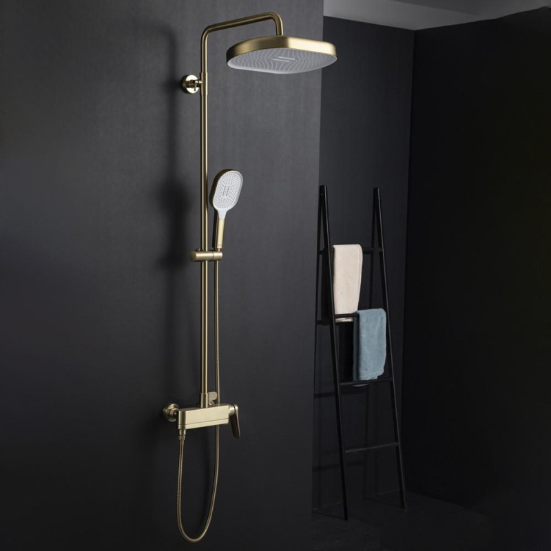 Душова система з термостатом GAPPO G2410-3 — це сучасне та функціональне рішення для комфортного прийому душу. Виготовлена з високоякісної латуні та має стильний колір «золотий сатин», ця система стане елегантним доповненням до сучасного інтер’єру ванної кімнати.