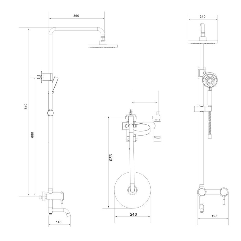 Душова система WEZER EKO16A-01, поворотний вилив - перемикач на лійку/душ, нержавіюча сталь