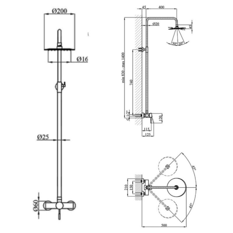 Душова система WEZER EKO16C-01, нержавіюча сталь