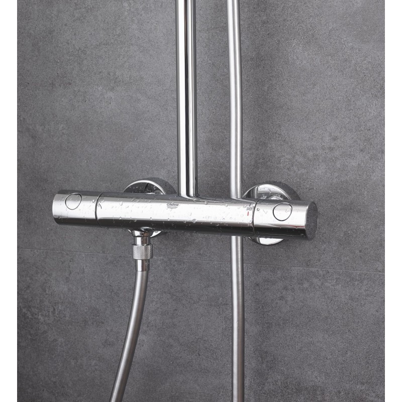 | Особливості | GROHE TurboStat - забезпечення та підтримання температури води. GROHE SafeStop – обмеження температури води до 38 °C. GROHE DreamSpray - оптимальне розподілення води по кожній душовій форсунці. GROHE StarLight – хромоване покриття. GROHE SpeedC |