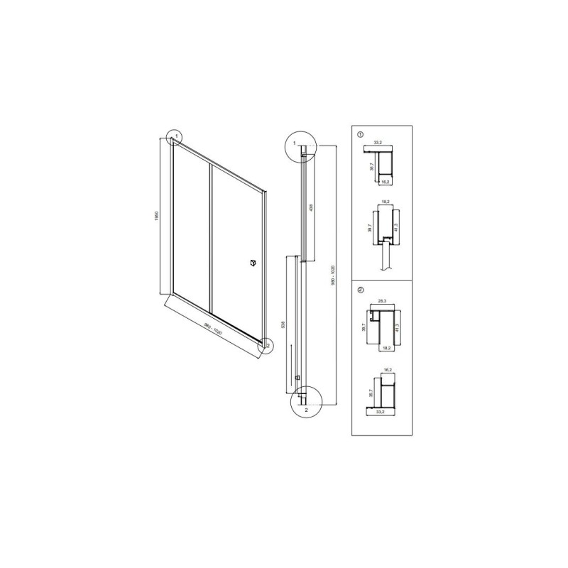Душові двері Duo slide 100x195 профіль чорний матовий, скло прозоре