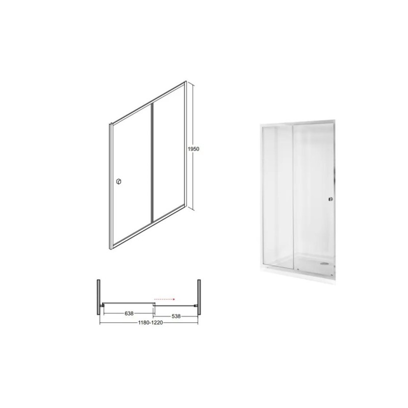 Душові двері Duo slide 120x195 профіль хромований блискучий, скло прозоре
