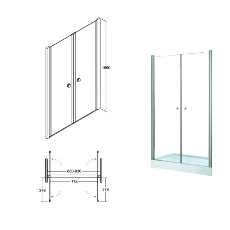 Душові двері Sinco due 90х195 хромовані блискучі