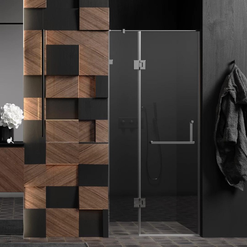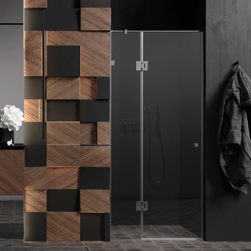Вони складаються з двох частин: ширшої та вужчої. Ширша частина виконує функцію дверей – вона розміщена на петлях з нержавіючої сталі, в той час як інша частина є нерухомою та кріпиться до стіни. Розміри конструкції можуть бути різними, як і її вигляд, адже Ви можете обрати не лише колір фурнітури та покриття скла, а й обробку скляної поверхні та дизайн ручки.