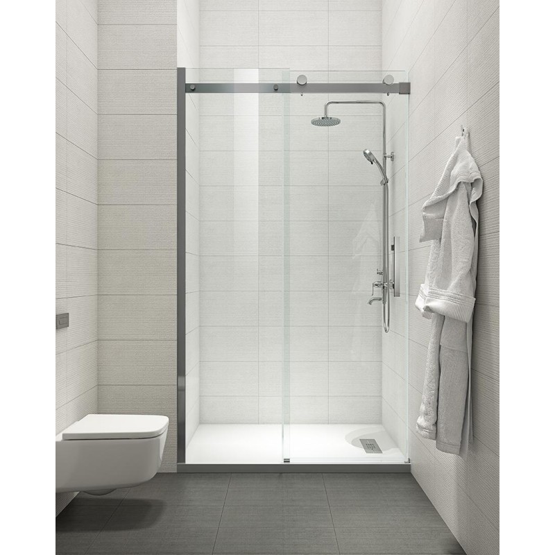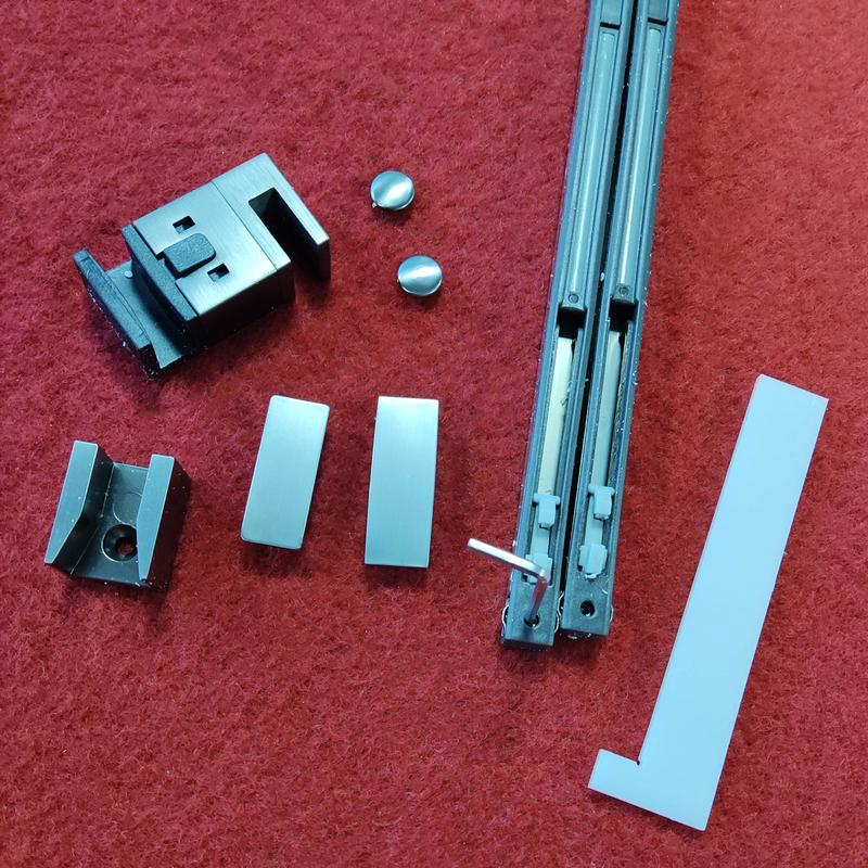| Комплектація | Упаковка 1/1. Глухе скло, скляні двері, профіль, верхня рейка, нижня алюмінієва водонепроникна планка, ручка, верхні ролики, система нижніх повзунів, комплект кріпильних деталей, набір ущільнювачів, заглушки. |