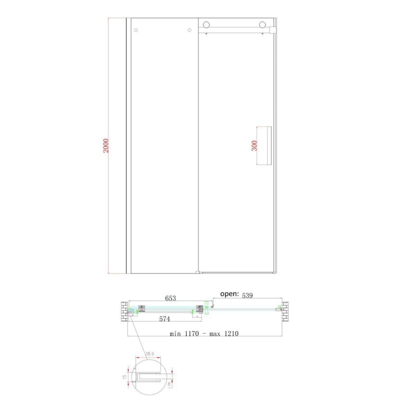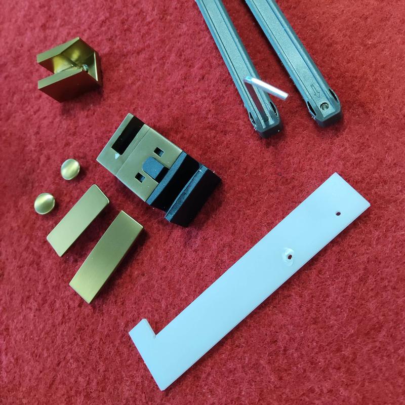 Комплектація Упаковка 1/1. Глухе скло, скляні двері, профіль, верхня рейка, нижня алюмінієва водонепроникна планка, ручка, верхні ролики, система нижніх повзунів, комплект кріпильних деталей, набір ущільнювачів, заглушки.