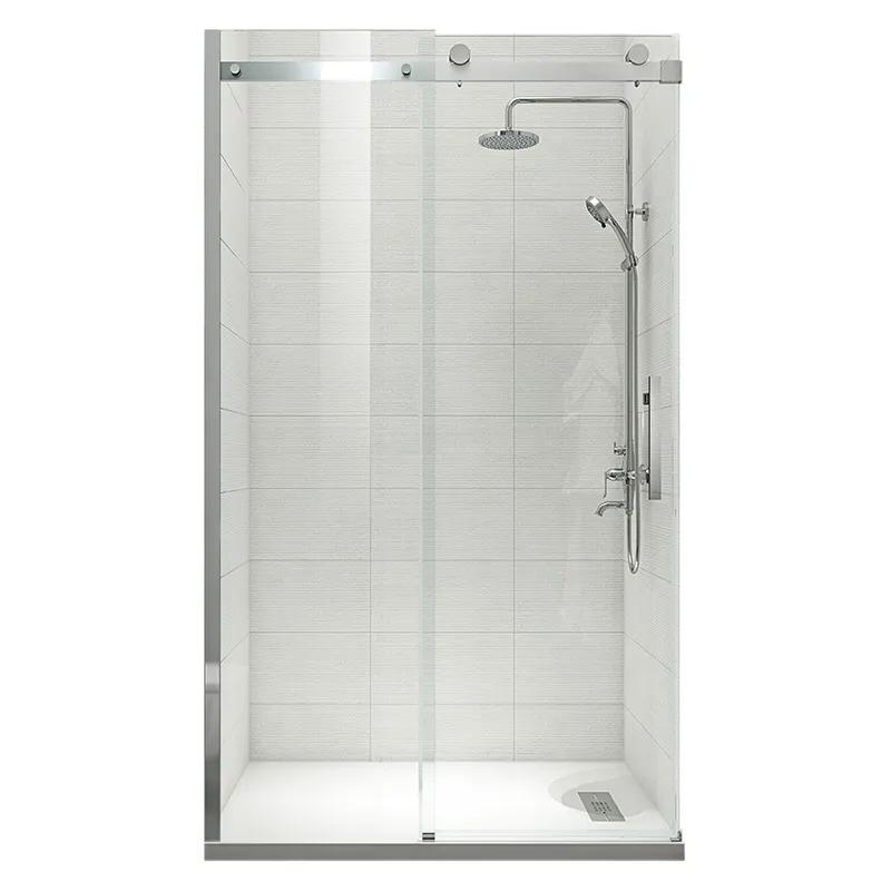 | Комплектація | Упаковка 1/1. Глухе скло, скляні двері, профіль, верхня рейка, нижня алюмінієва водонепроникна планка, ручка, верхні ролики, система нижніх повзунів, комплект кріпильних деталей, набір ущільнювачів, заглушки. |