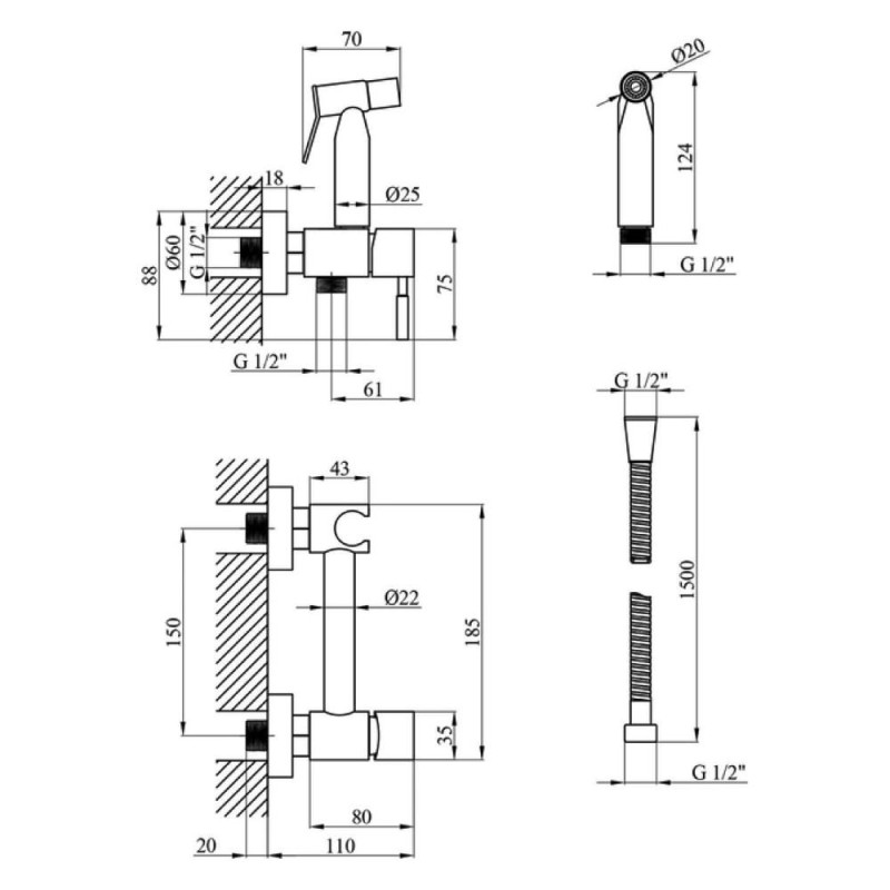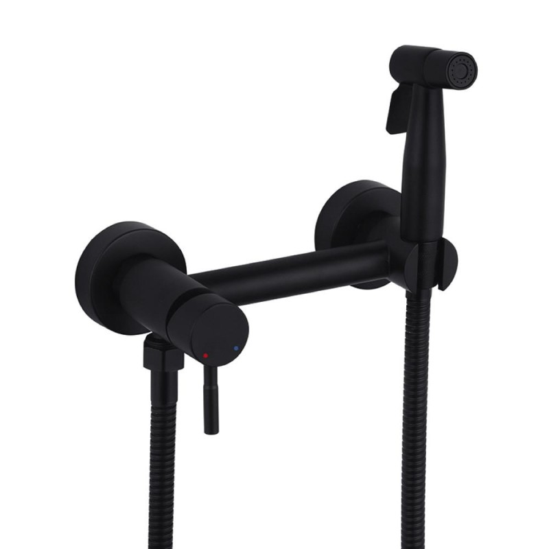 Настінний гігієнічний душ виготовлений з нержавіючої сталі. Найнадійніший матеріал для виготовлення сантехнічних виробів. Він не буде іржавіти і темніти з часом. Поверхня легко доглядати, покриття фарба. На такому відтінку менш помітні забруднення і залишаються пальці. Добре вписується в інтер'єр, стає центром композиції. Нині чорний колір дуже популярний. Механізм змішування важіль, зручний у використанні та гнучкий у налаштуваннях. Кріпиться на стіну за допомогою ексцентриків.