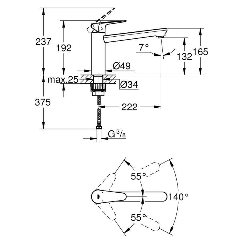 Grohe BauCurve Одноважільний змішувач для мийки (31715000)