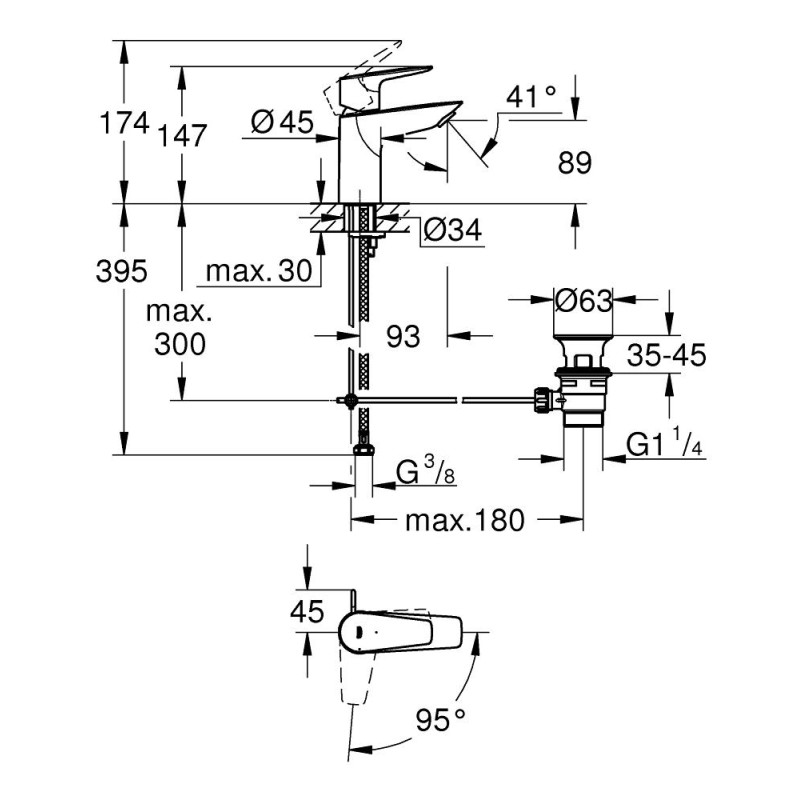 Одноважільний змішувач для раковини GROHE BauEdge New задовольнить смак навіть найвибагливішого споживача, так як в ньому ідеально дотриманий баланс чудового стилю, надійності і високої якості.