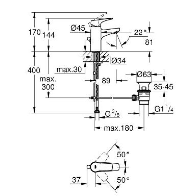 Висота змішувача 144 мм