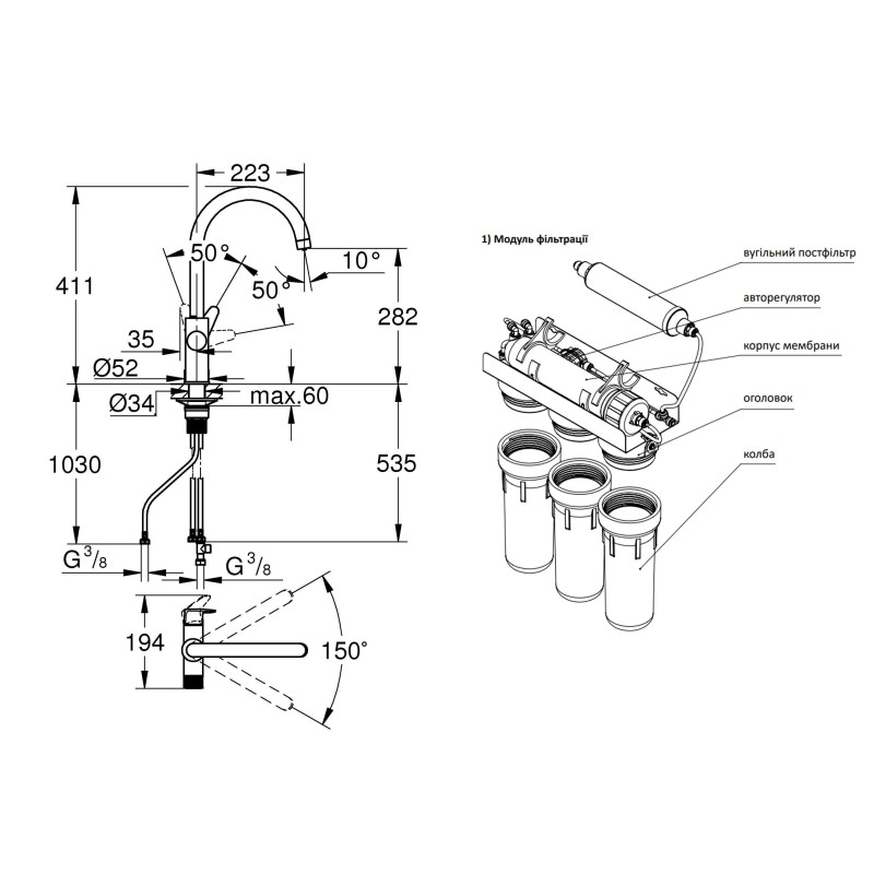 Просте підключення за 1 годину - встановлюється під мийкою, в коплекті є всі компоненти для підключення