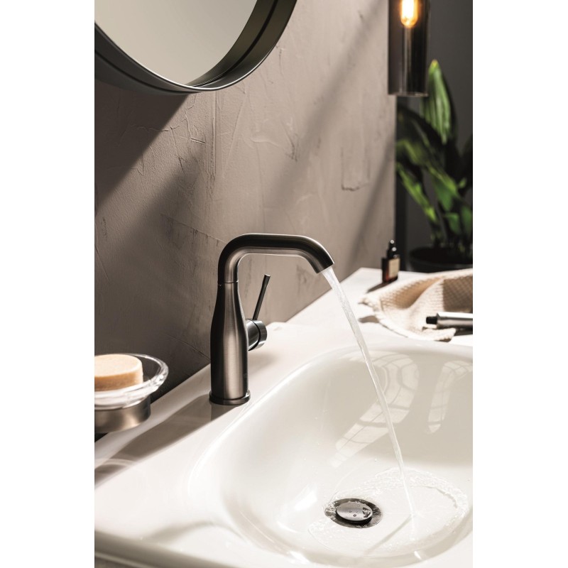 Створений з видатним поворотним виливом та матовою поверхнею кольору "темний графіт", цей змішувач GROHE Essence для раковини з донним клапаном відмінно підійде до інтер'єру будь-якої сучасної ванної.