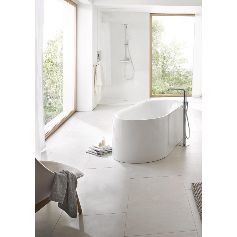 Овальна ванна, що встановлюється окремо, з колекції GROHE Essence володіє власним характером, незважаючи на чіткий, лаконічний дизайн. Округлий зовнішній вигляд спритно підкреслює м'які, плавні лінії ванни. Тонкий край плавно з'єднує між собою внутрішню і зовнішню форми ванни. Завдяки надзвичайно вузькому бортику, в результаті виходить простора чаша з унікальним рівнем комфорту.