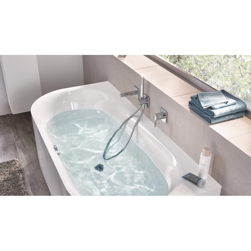 Призначена для монтажу до стіни, овальна ванна з колекції GROHE Essence має власний характер, незважаючи на чіткий, лаконічний дизайн. Округлий зовнішній вигляд спритно підкреслює м'які, плавні лінії ванни. Тонкий край плавно з'єднує між собою внутрішню і зовнішню форми ванни. Завдяки надзвичайно вузькому бортику, в результаті виходить простора чаша з унікальним рівнем комфорту.