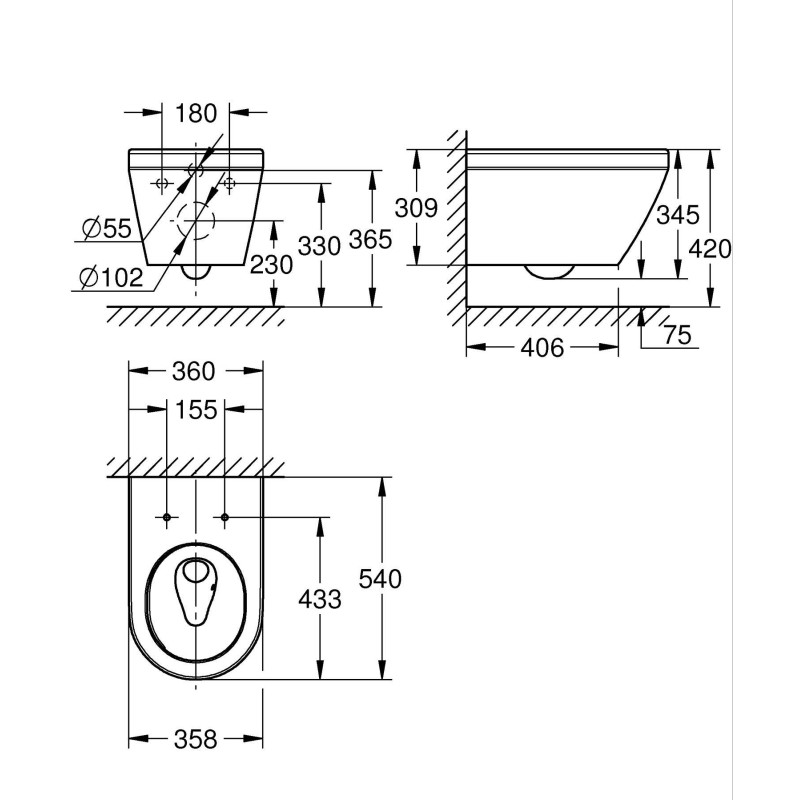 Завдяки безобідковому дизайну чаші мікробам і бруду ніде сховатися - тому чистити її легко! - А вдосконалена нова технологія GROHE Triple Vortex, яка використовує три виходи води для створення потужного, але безшумного і без бризок ефективного вихору, очищає кожен куточок. Об'єм змиву становить 4,5/3 л.