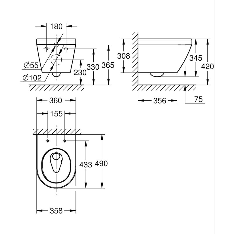 Завдяки безобідковому дизайну чаші мікробам і бруду ніде сховатися, а вдосконалена технологія GROHE Triple Vortex очищає кожен куточок. Вона використовує три виходи води для створення потужного, але тихого, безшумного, без бризок ефективного вихору, який очищає кожен куточок. Об'єм змиву становить 4,5/3 л.