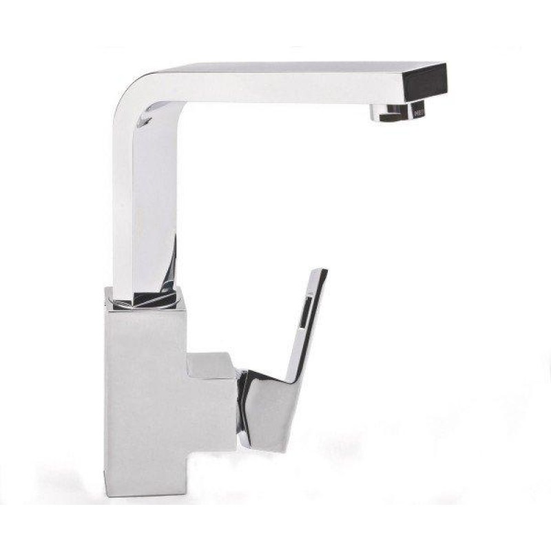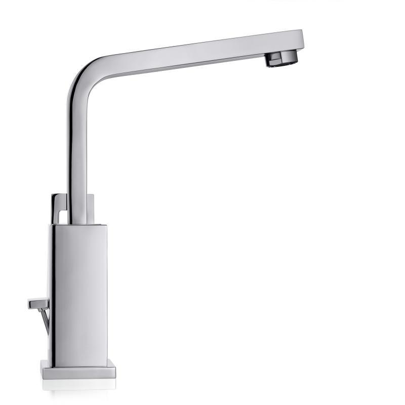 Високий вилив, що обертається в діапазоні 90 градусів, ідеально поєднується з найбільшими раковинами і дозволяє без труднощів наповнювати високі ємності і мити голову в раковині.