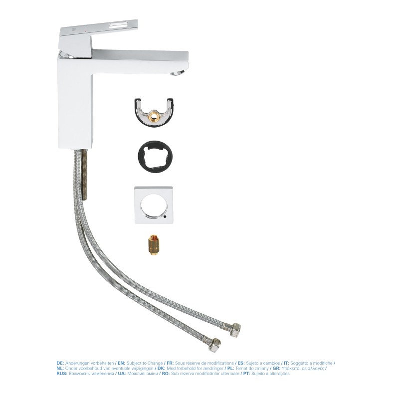 Цей змішувач для раковини з колекції Eurocube з цільним корпусом без зливного клапану відрізняється елегантними формами та лаконічним дизайном, а також безліччю різноманітних функцій.