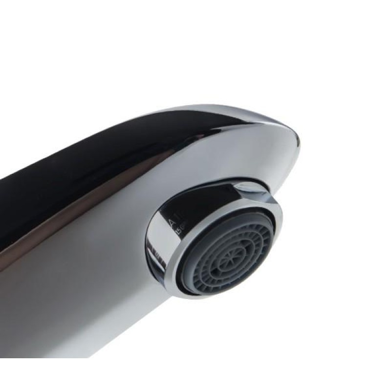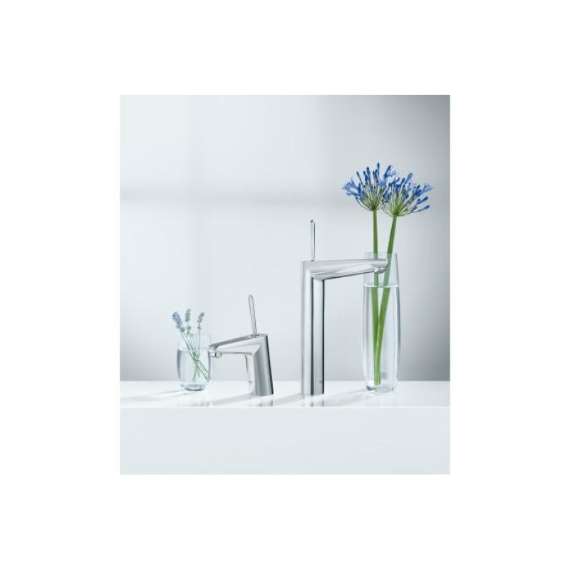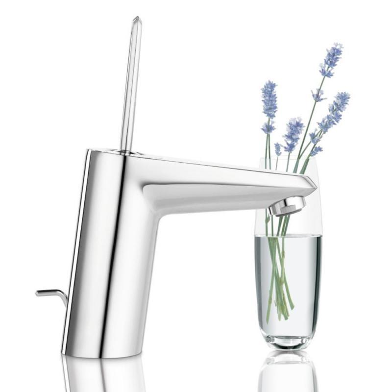 Важіль джойстикового типу, будучи центральним елементом оригінального образа даного змішувача, також виконує роль механізму управління напором і температурою води, робота якого побудована на базі картриджа GROHE FeatherControl®.