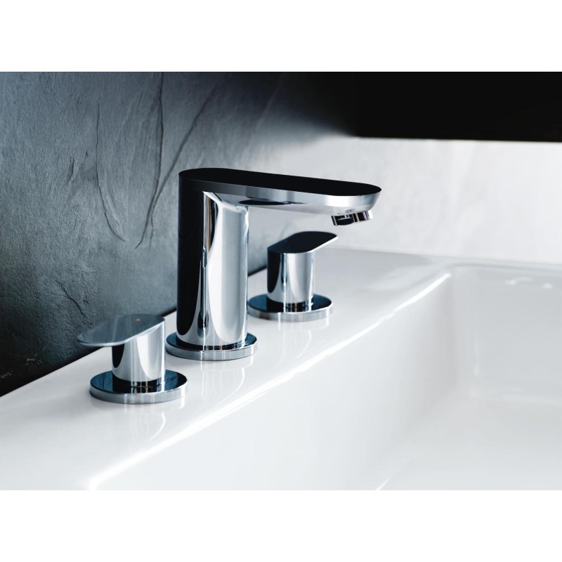Фірмова якість, що користується довірою і екстравагантний дизайн: цей змішувач для ванної кімнати Eurosmart Cosmopolitan стане справжньою зіркою інтер'єру завдяки оригінальній конструкції з парою широко розставлених вентилів, ефектність якого підкреслюється сяючим хромованим покриттям.