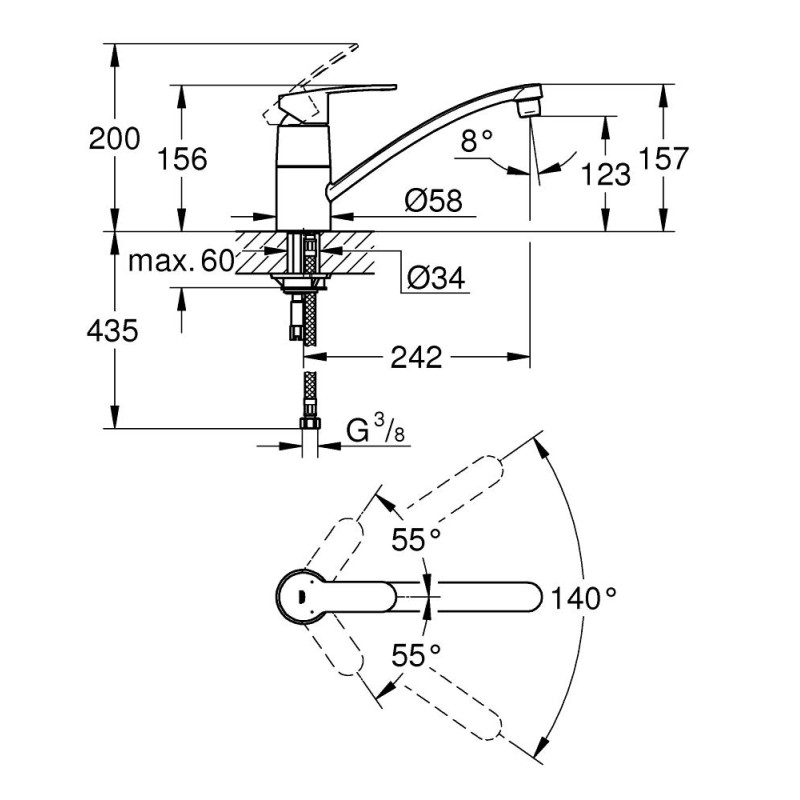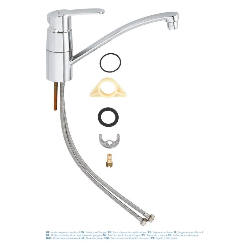 У змішувача також вбудований регульований обмежувач напору води, а сліпуча хромова поверхня GROHE Long-Life Shine стійка до подряпин і її дуже просто чистити - досить провести по змішувачу сухою ганчіркою і він знову буде виглядати як новий. GROHE Eurostyle Cosmopolitan - розумний і швидкий спосіб додати стиль і відмінну якість в роботу вашої кухні!